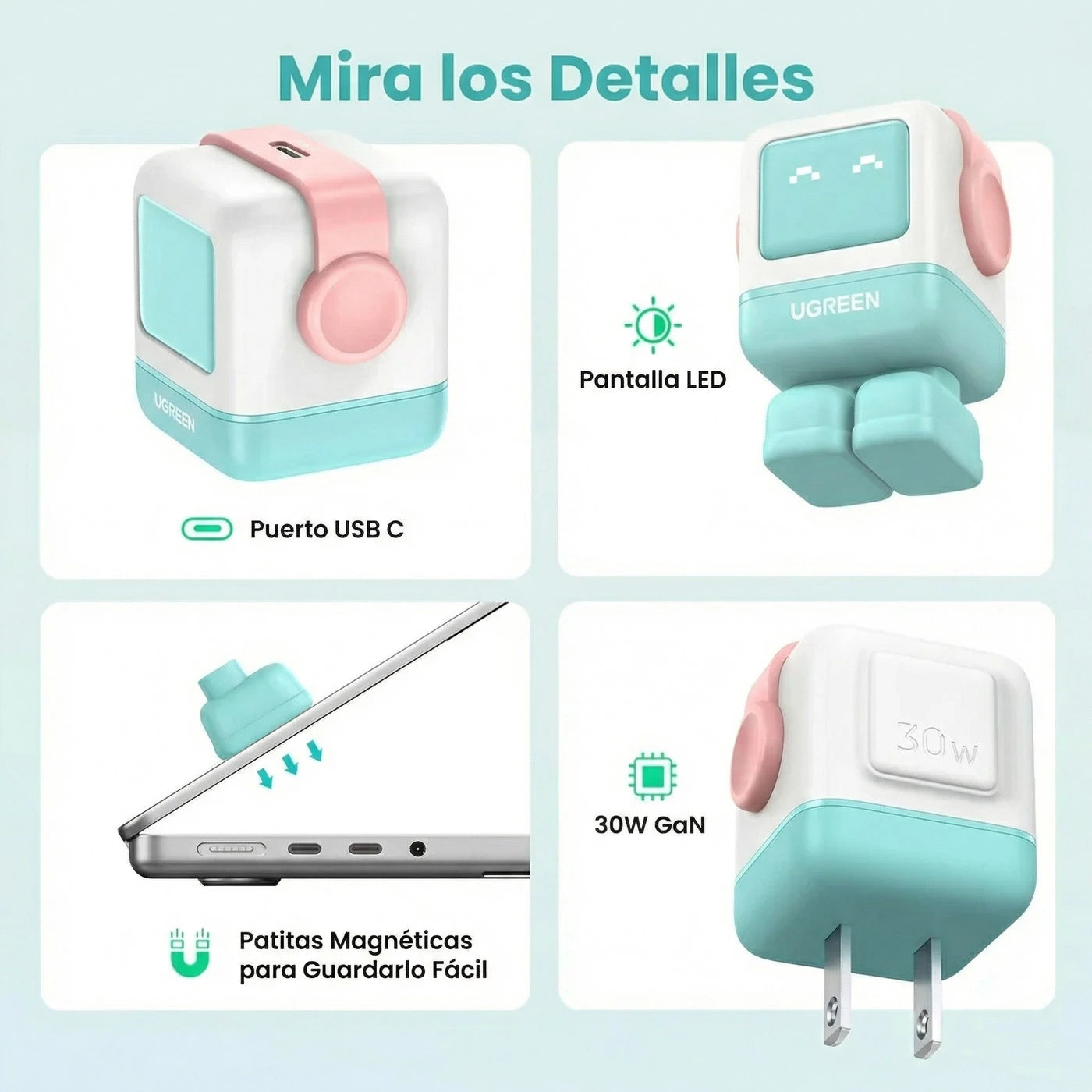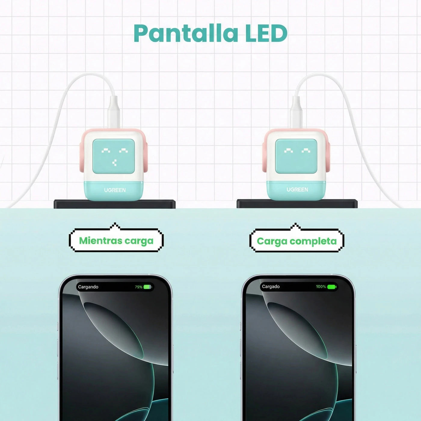 Cargador UGREEN Uno Robot GaN 30W USB-C - Pink Blue