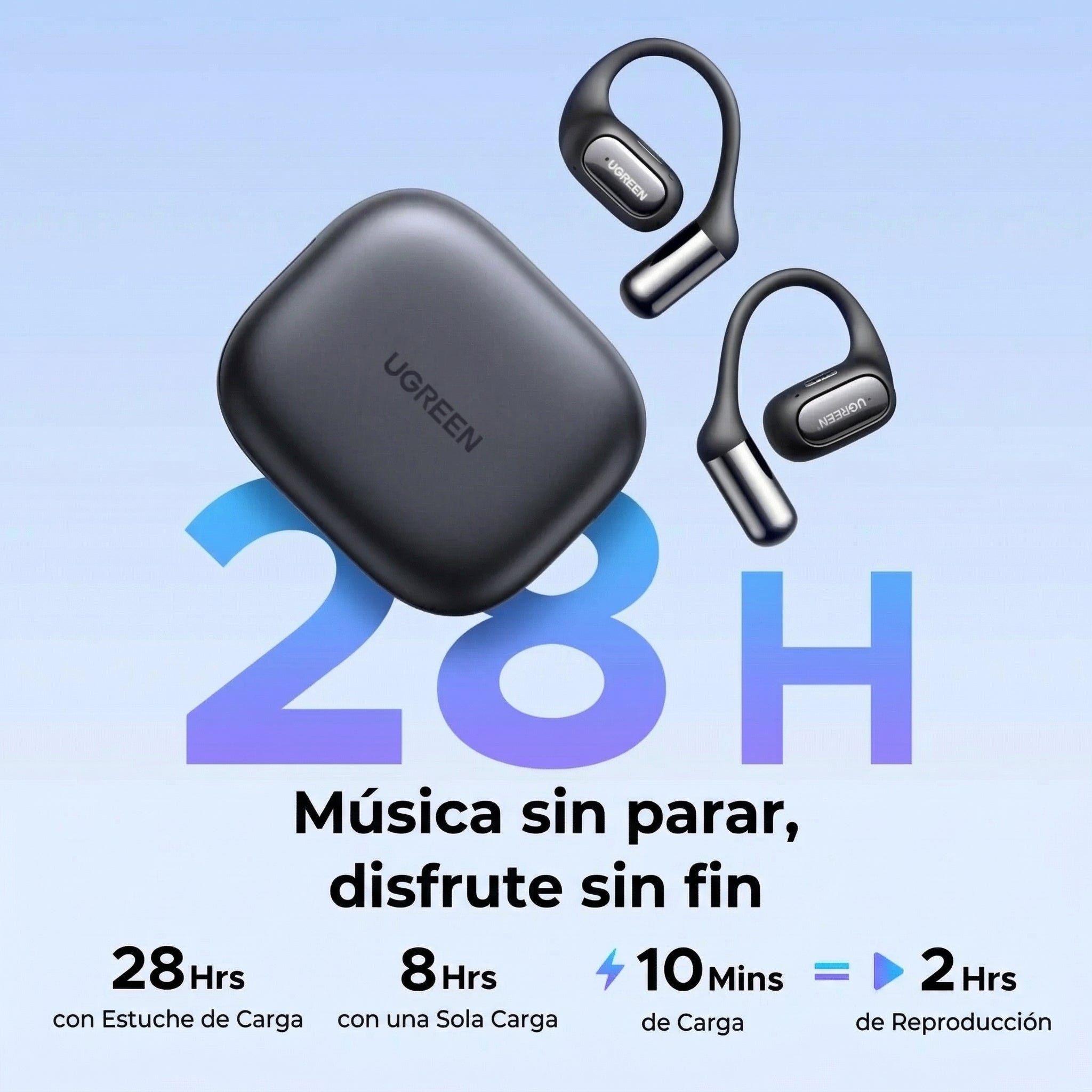 Los UGREEN FitBuds Open-Ear combinan diseño abierto cómodo con cancelación activa de ruido, conectividad Bluetooth estable y controles táctiles intuitivos. Perfectos para escuchar música, podcasts o atender llamadas sin aislarte absolutamente del mundo.