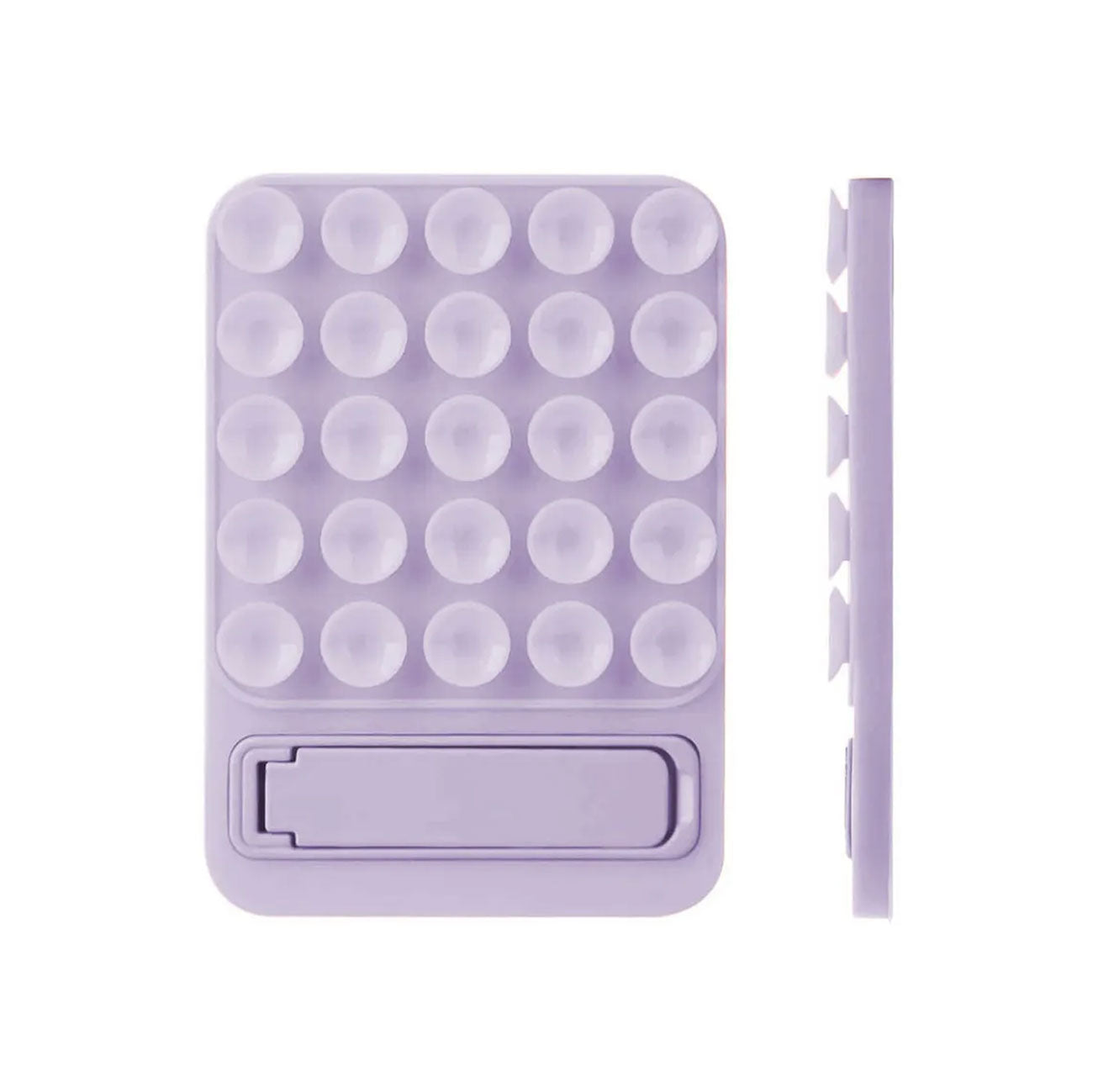 Soporte de silicona con 25 ventosas que se adhieren a espejos, vidrios o superficies lisas. Su base plegable te permite usarlo como parante o soporte magnético para grabar, tomar selfies o hacer videollamadas sin usar las manos. Ideal para creadores de contenido y uso diario.