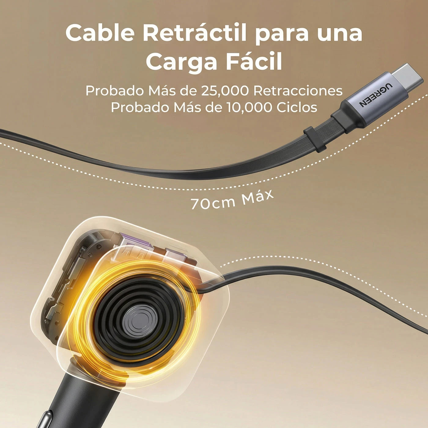 Cargador para auto Ugreen NEXODE 145W con cable retráctil integrado - 55910B
