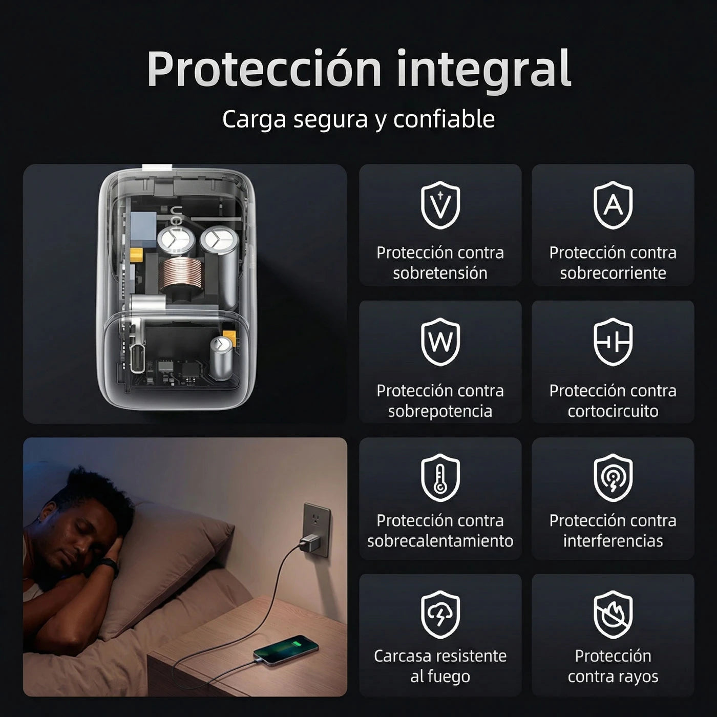 Seguridad contra sobrecarga, sobrecalentamiento y picos de voltaje. -