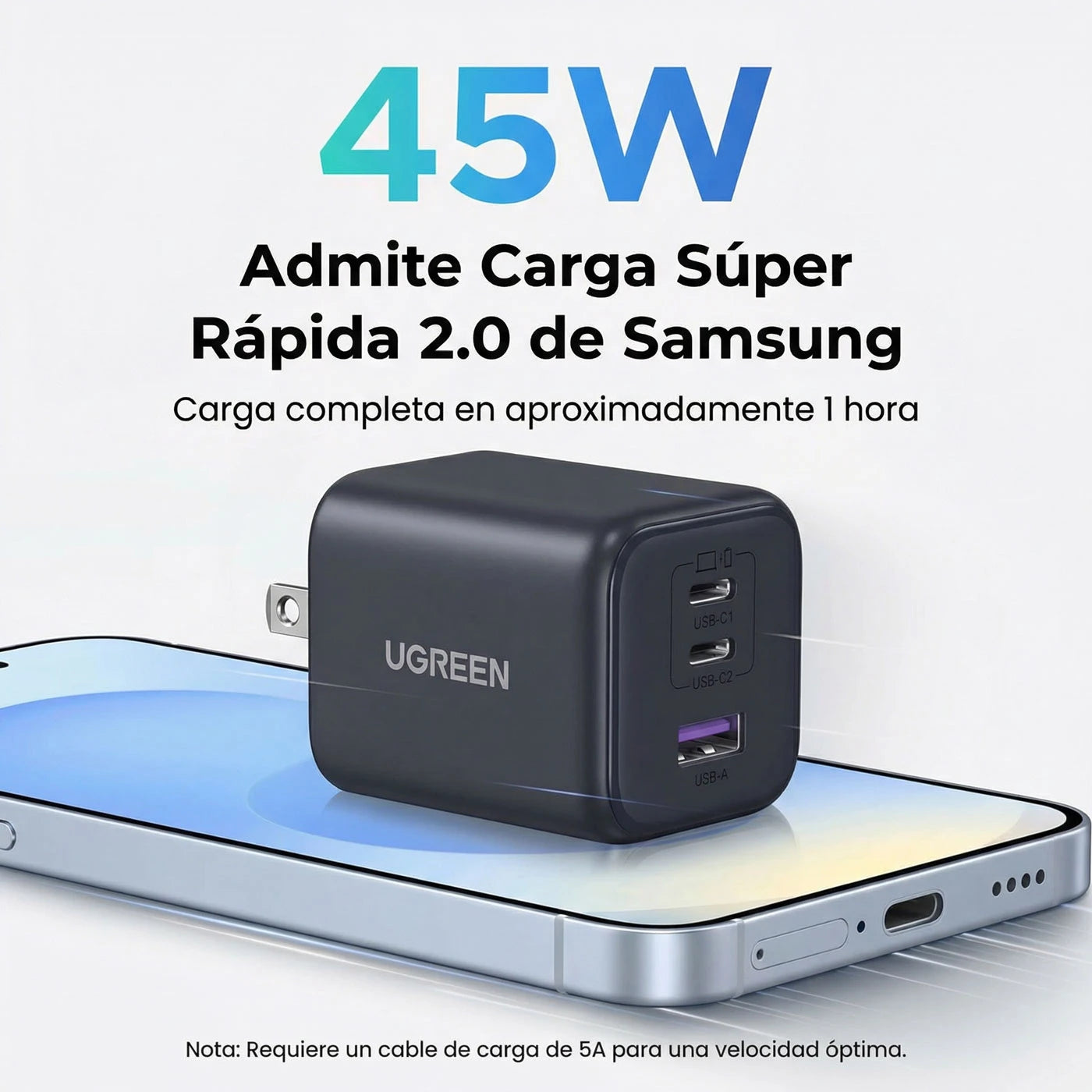 Cargador Ugreen 45W GaN 3 Puertos USB-C