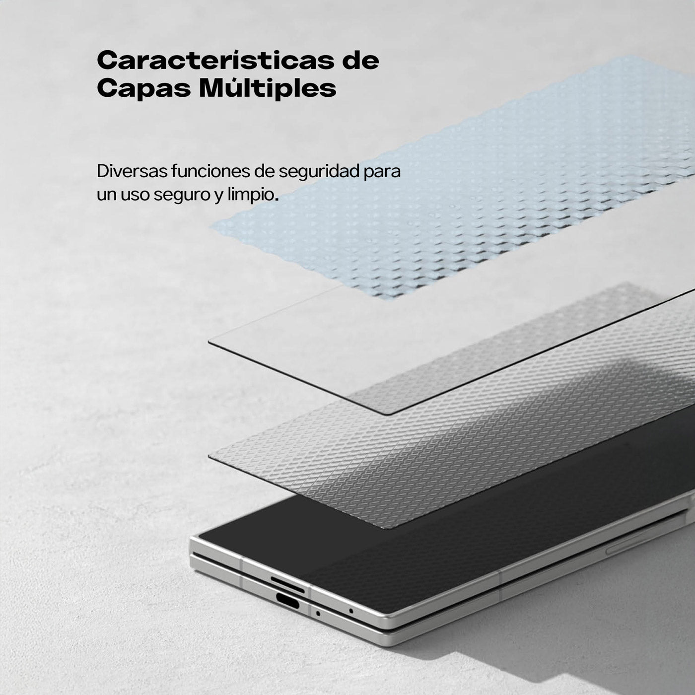Tres capas de defensa ultra delgada se combinan para proteger tu pantalla como se merece, sin añadir volumen ni arruinar el diseño. Su instalación es sencilla gracias al adhesivo de alta claridad, y su dureza 9H lo hace imbatible contra arañazos, grietas y golpes inesperados.