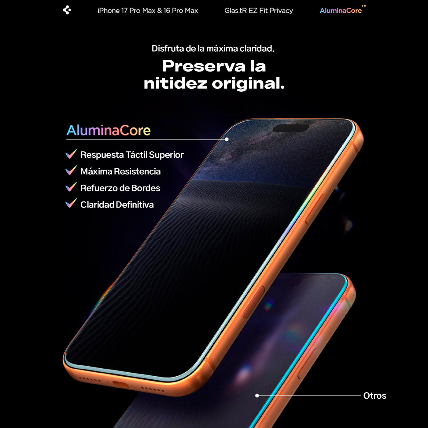 Diseñada para proteger y mantener la privacidad, únicamente te permite visualizar la pantalla de tu iPhone de manera frontal, así que nadie más podrá espiarte desde otro ángulo. La protección de su pantalla no es ninguna broma, nuestros productos han pasado por las revisiones más sofisticadas para medir su resistencia. La superficie curva se adhiere completamente a la pantalla del iPhone, resistente a las rayaduras, impactos y huellas.