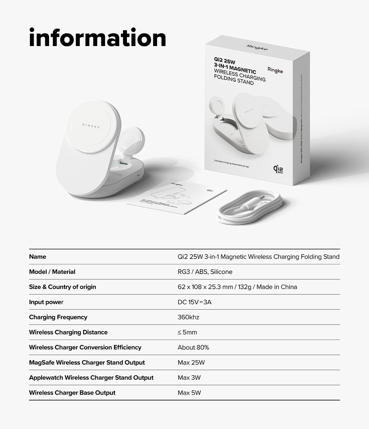 Cargador Magsafe Ringke Qi2 25W 3-in-1 Folding Stand