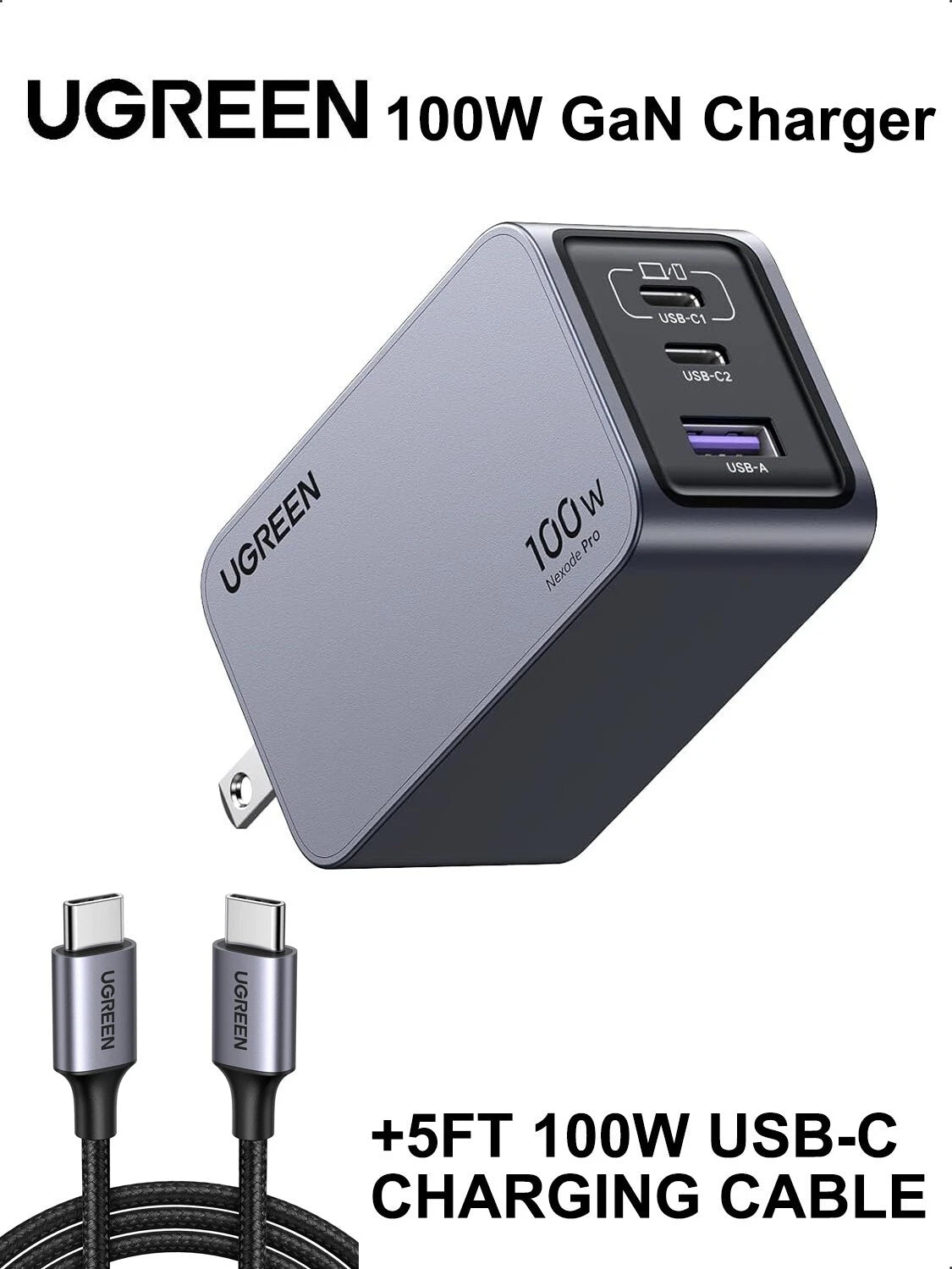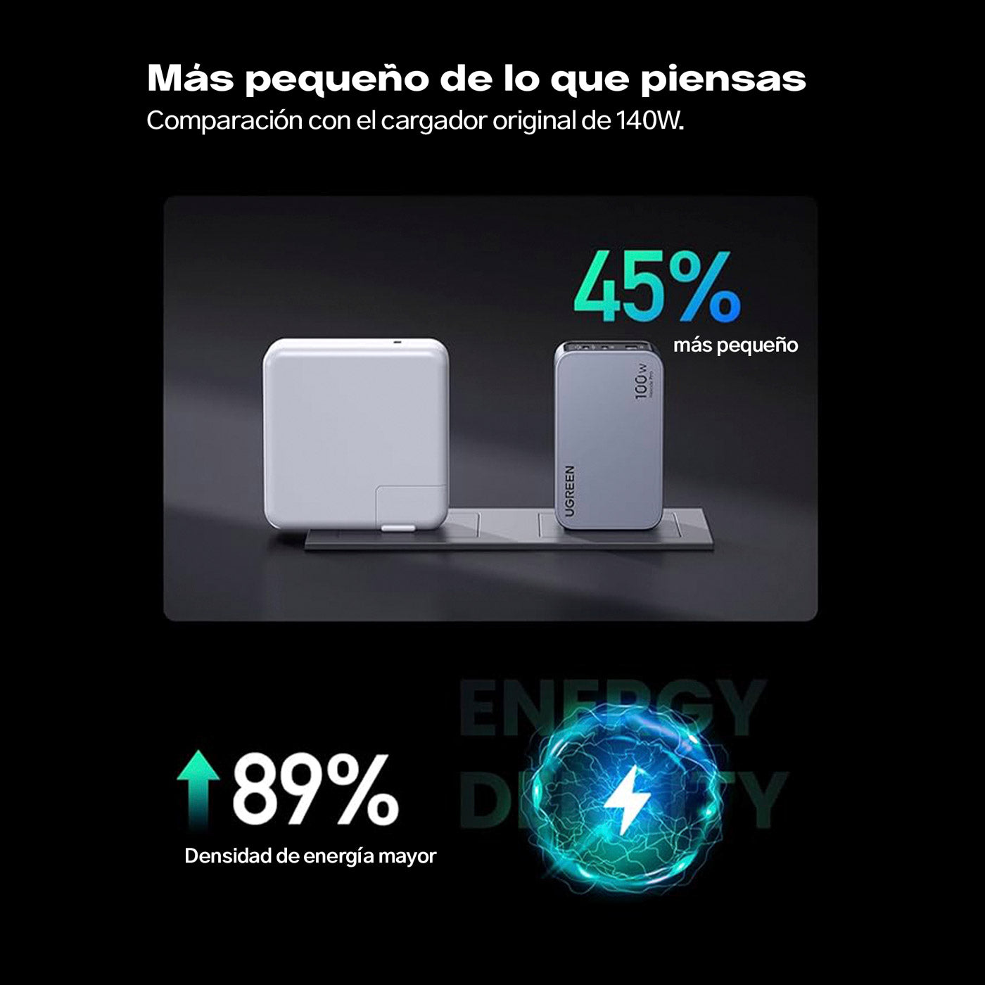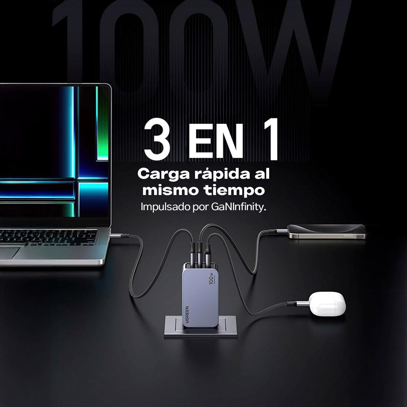 El UGREEN 100W GaN carga laptops, tablets y teléfonos al mismo tiempo, sin calentarse y sin perder potencia. Tecnología GaN real, tamaño compacto y energía suficiente para que tu escritorio deje de parecer una subestación eléctrica.