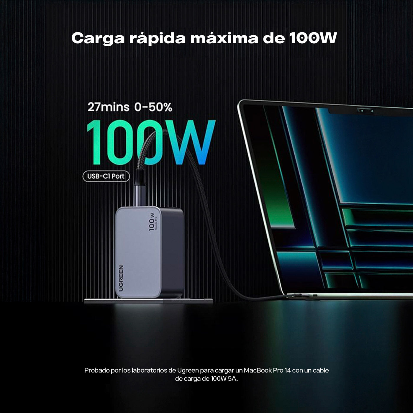 - 100W de potencia real: carga laptops potentes, no solo celulares con fe.