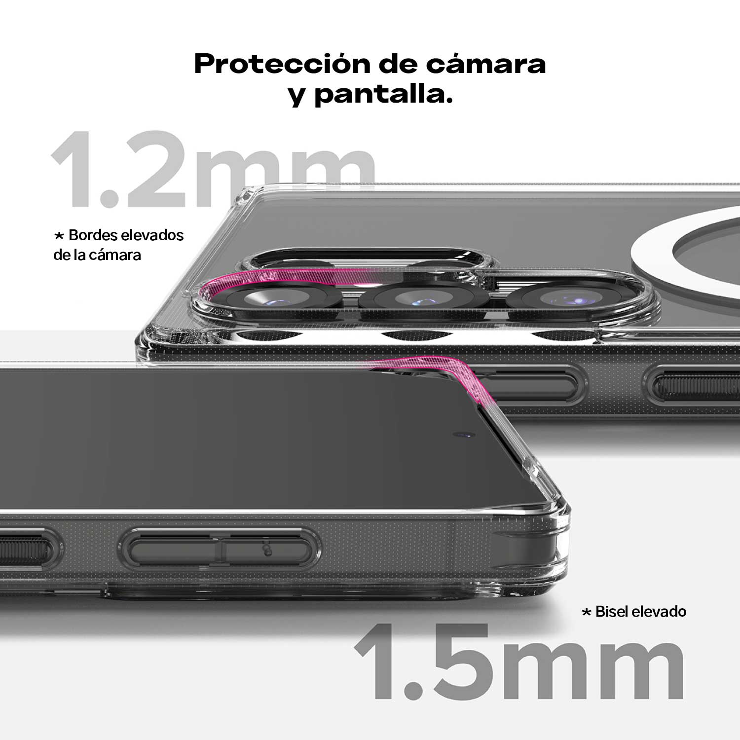 | Material | Híbrido: TPU flexible (bordes) + PC rígido (parte trasera) |
