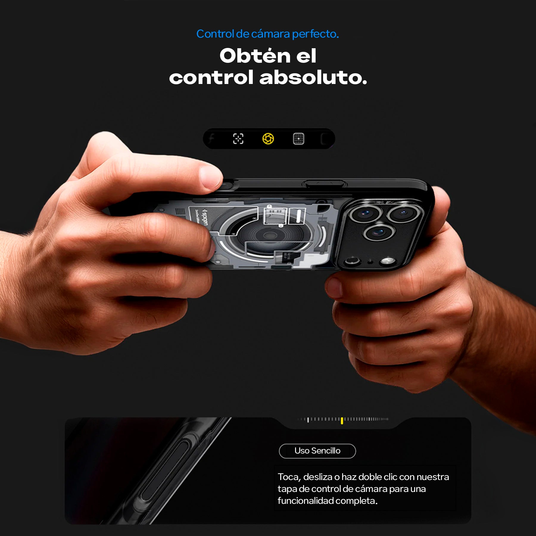 Este case viene con MagSafe integrado y camuflado, listo para conectarse con todos esos accesorios épicos que tienes en la mira (ver aquí). ¿Y el nuevo detalle? Una cubierta táctil sobre el botón de cámara que hace que tomar fotos se sienta más natural, más rápido, más tú.