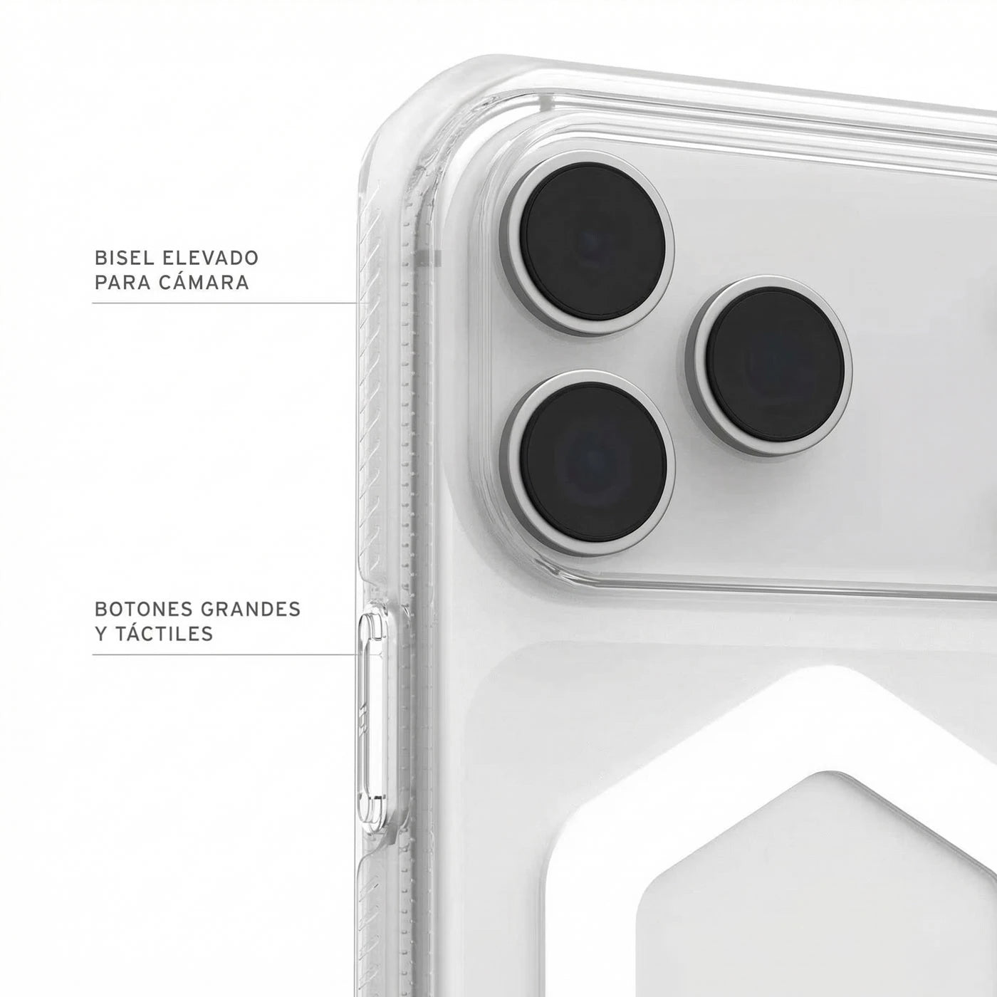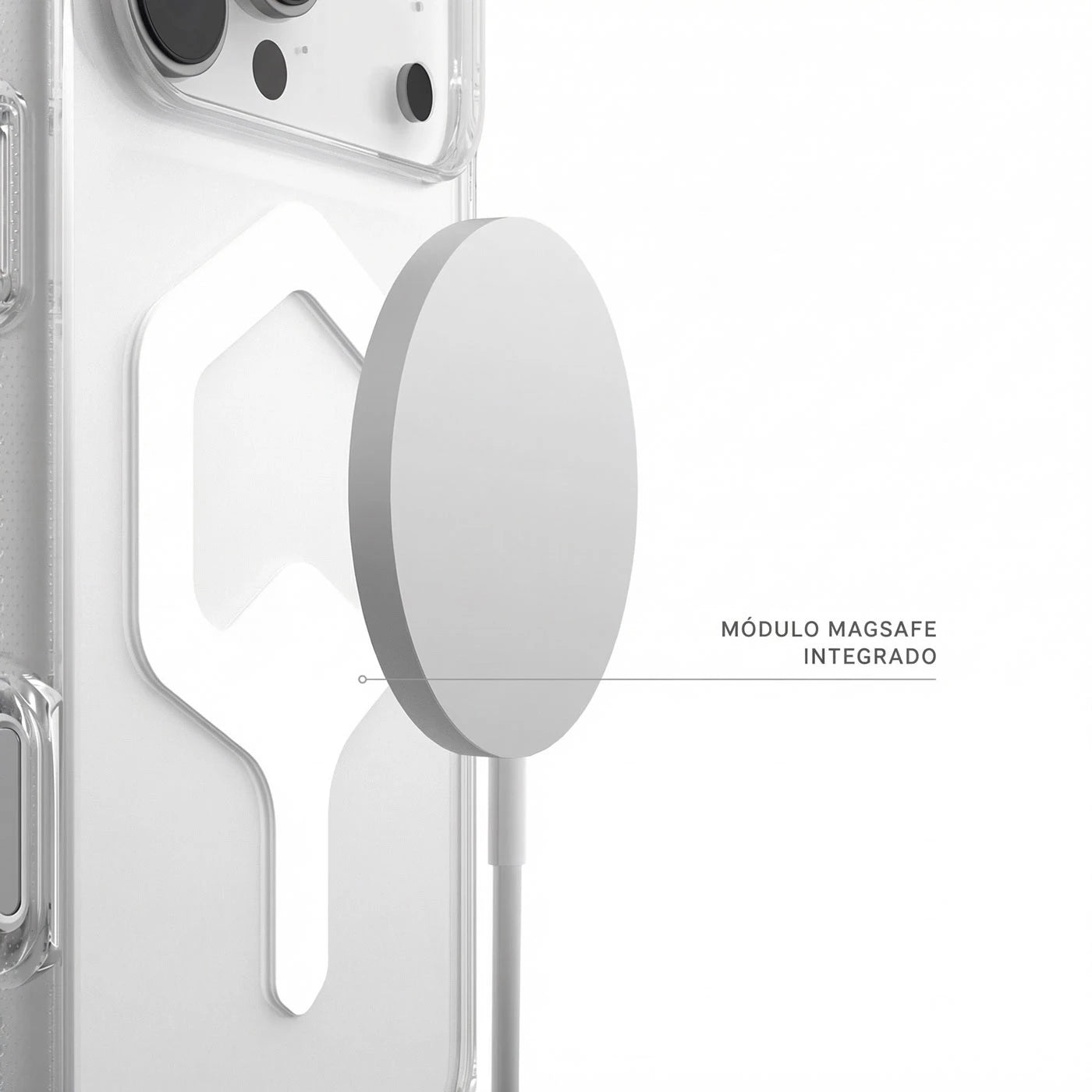 Combina una protección contra caídas con una estética moderna y pulida. Cuenta con un fuerte imán incorporado para una compatibilidad perfecta con la carga MagSafe.