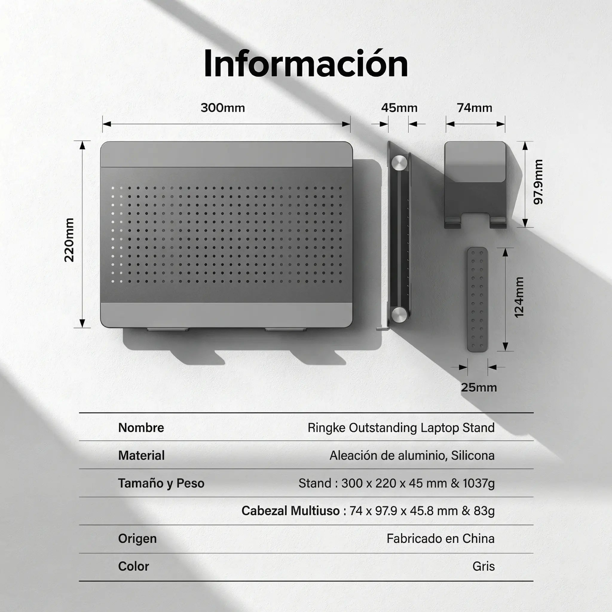 | Dimensiones Stand laptop | 30 x 22 x 4.5 cm |